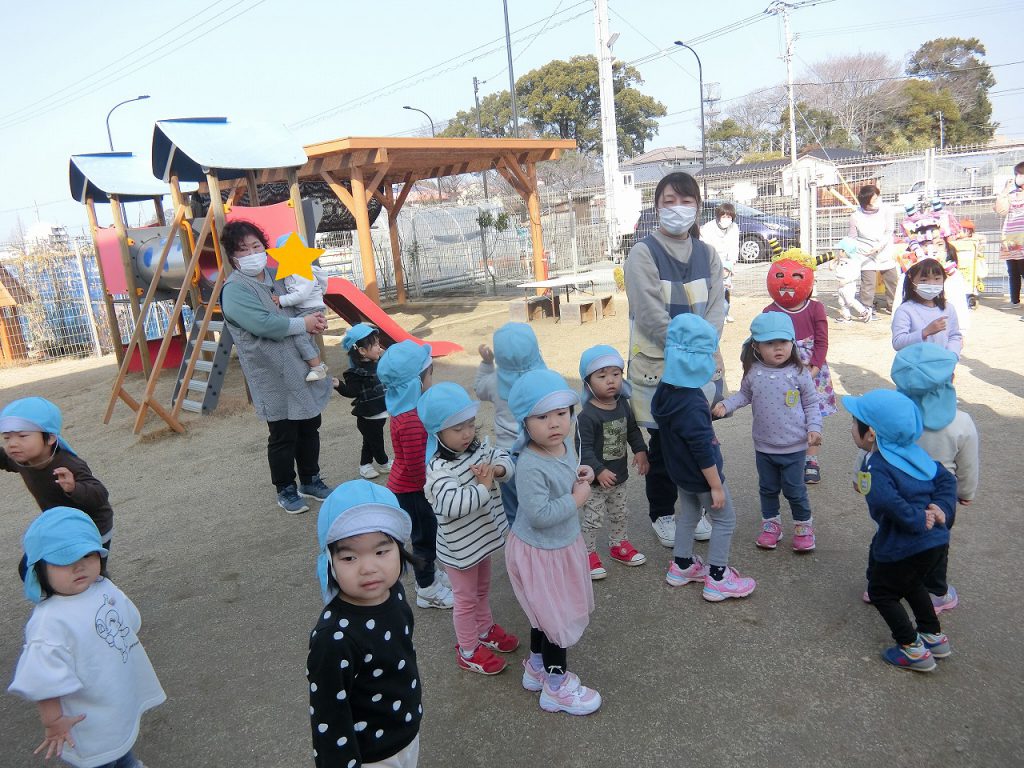 落ち着いてから、みんなで園庭に出て鬼のパンツを踊りました!