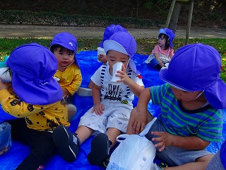 10月11日(金)あか・あお組(0.1歳児)は、ジャンボタクシーに乗って。き組(2歳児)はバスに乗って堀の内公園に行ってきました!