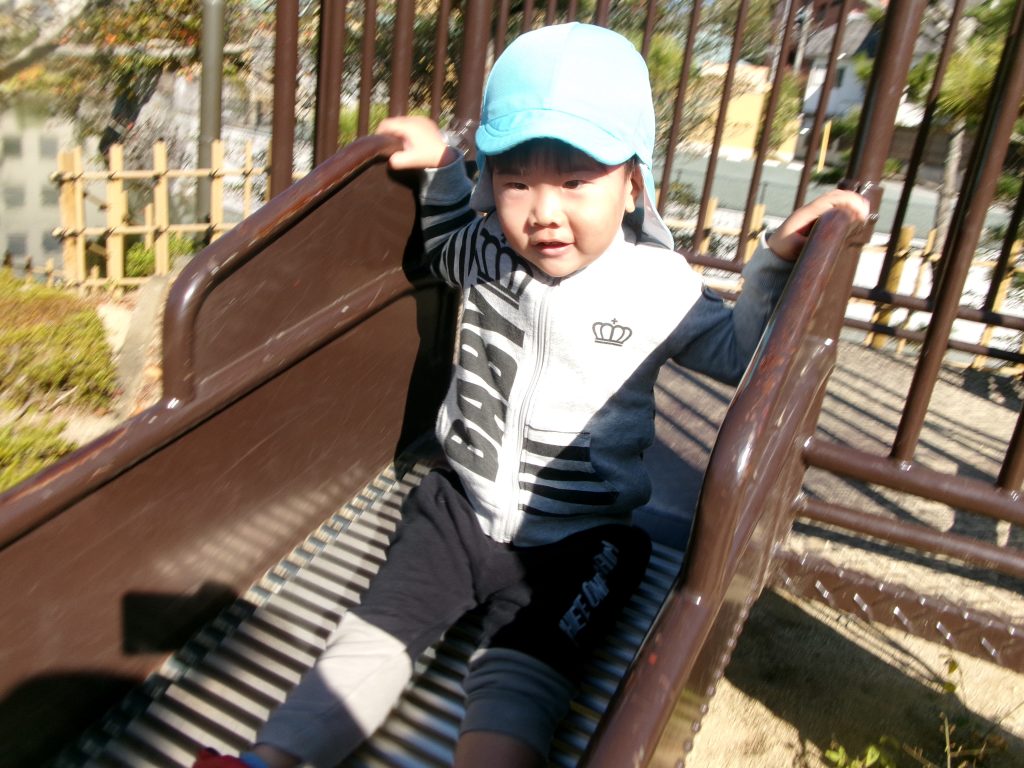 保育者の「いいよ」の掛け声を聞き、喜んで遊具に駆け寄っていく子どもたち!大きい滑り台やローラー滑り台、ブランコなどたくさんの遊具があり、子どもたちは走り回りながら楽しく遊びました😊