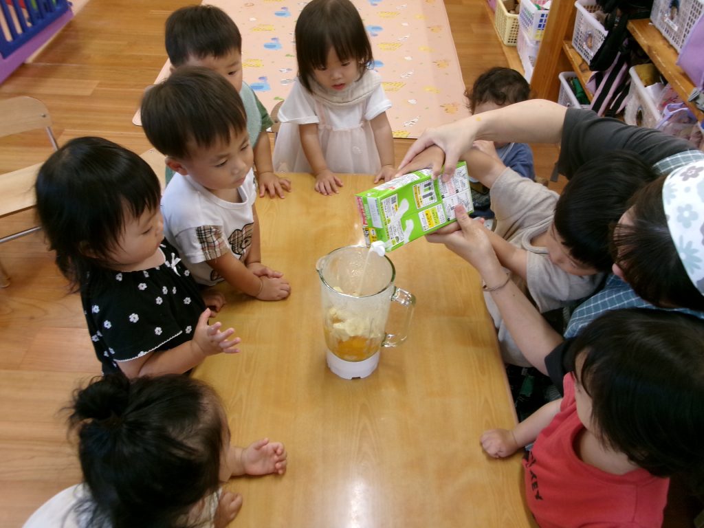 き・あおぐみさんでミックスジュースづくりをしました(^▽^)/