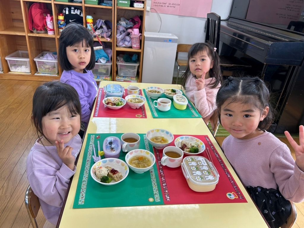 クリスマス会が終わった後にも楽しみが!!!給食の先生が作ってくれた美味しい給食とおやつで会食です(^▽^)/