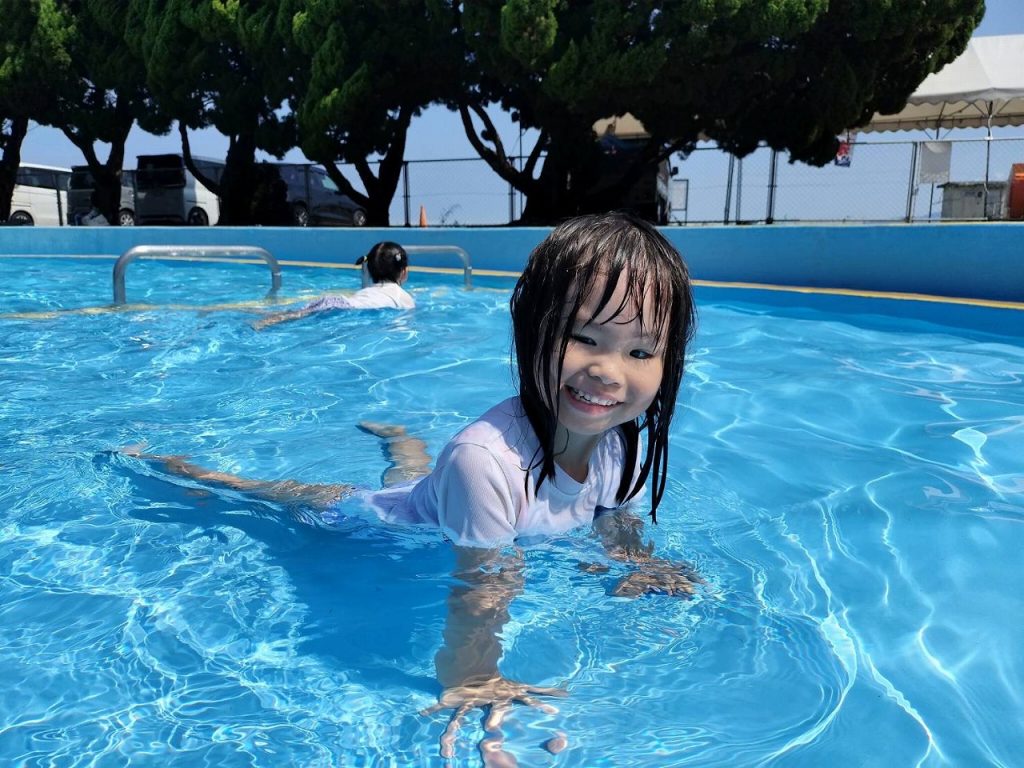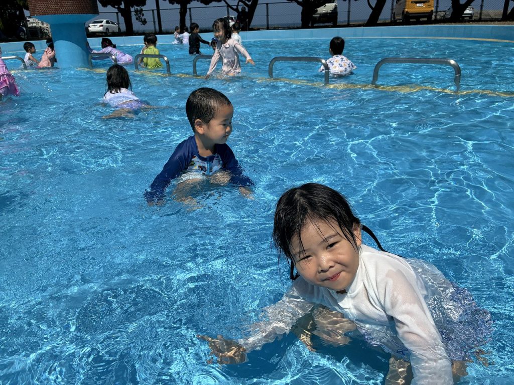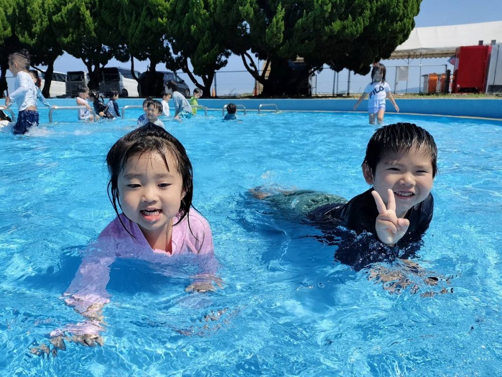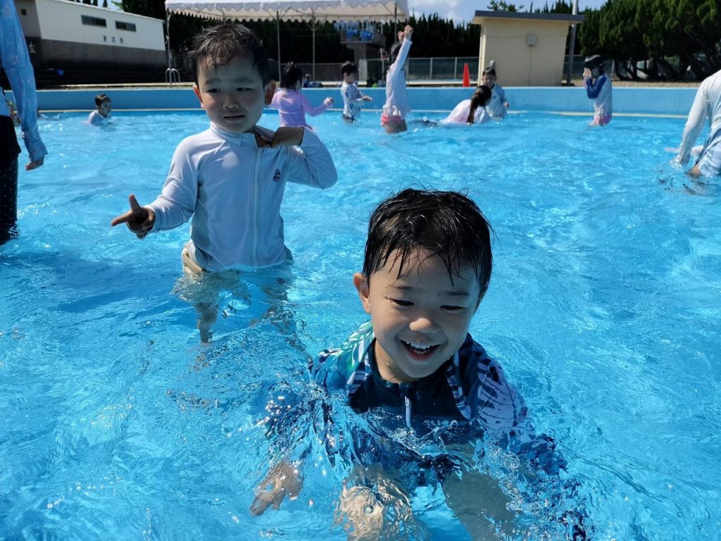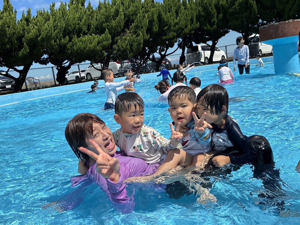 そら組さんは初めての五色浜プールで、朝からハイテンション!五色浜プールは塩水を溜めているので、いつもの園のプールとは、 味も?! 広さも、肌触りも、開放感も違います(^-^)みんな大喜びで遊びました。