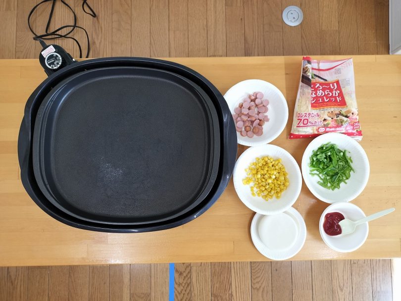 いよいよホットプレートで焼いていきます。だんだんとチーズが溶け始め、いい香りが部屋中に広がっていきました。