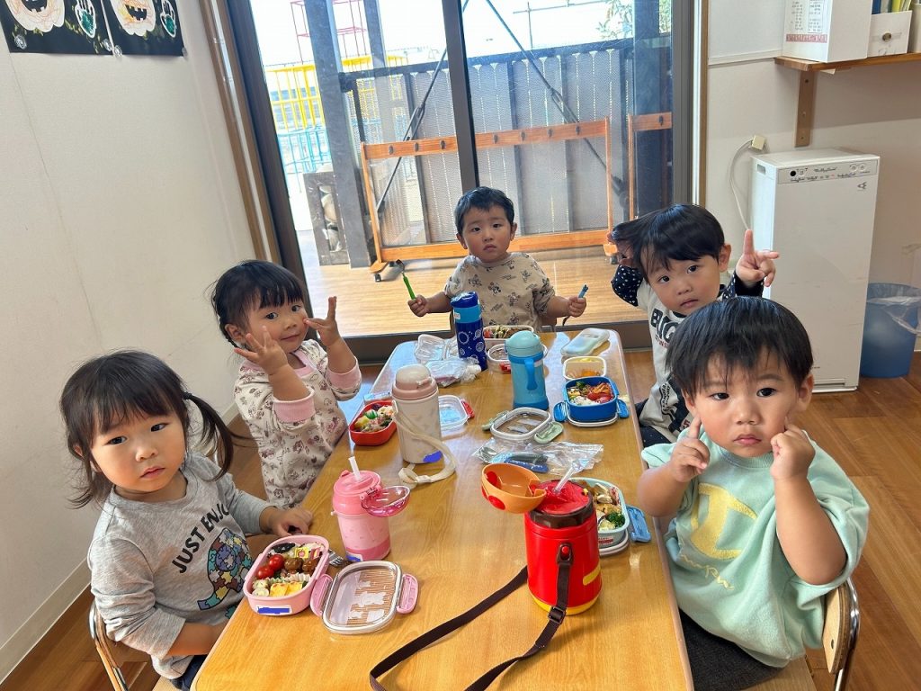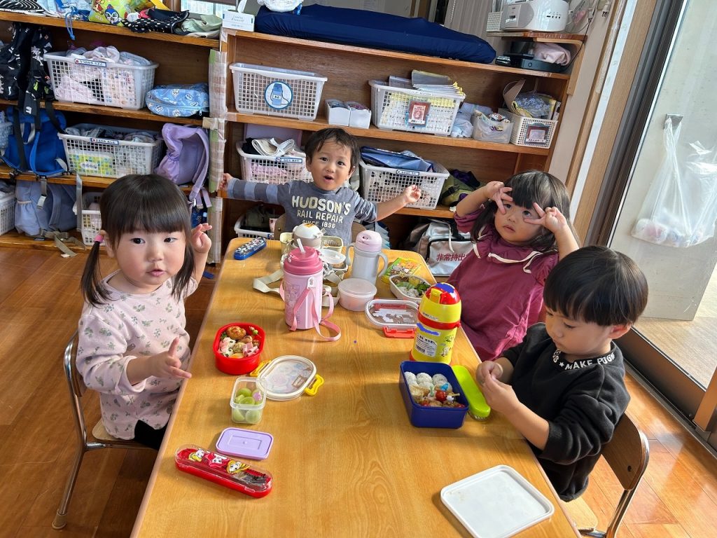 園に戻ったら、朝から楽しみにしていたお弁当の時間!どれから食べようかな~(^^)とワクワクしながらいただきました。