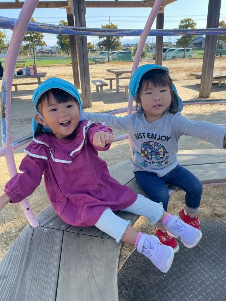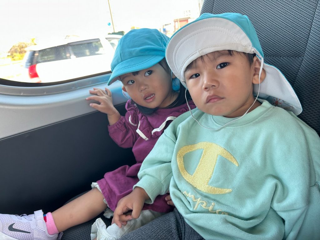 東垣生公園に行きました。ジャンボタクシーに乗ってドキドキ・ワクワクのみんなです。