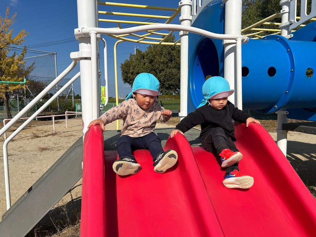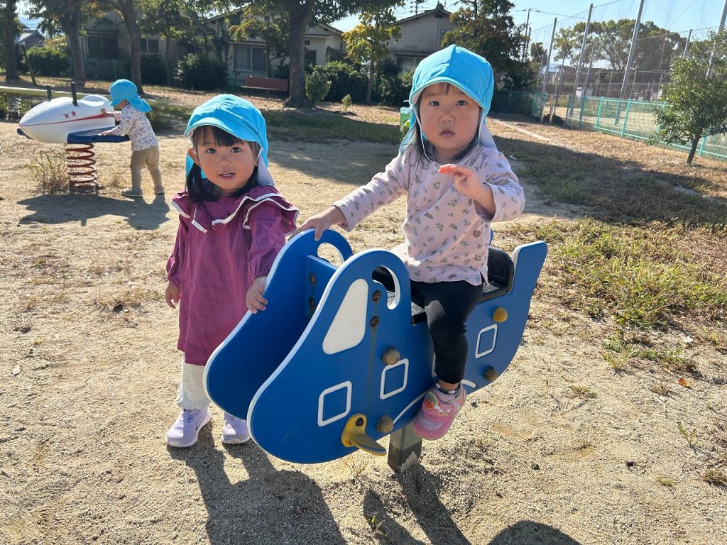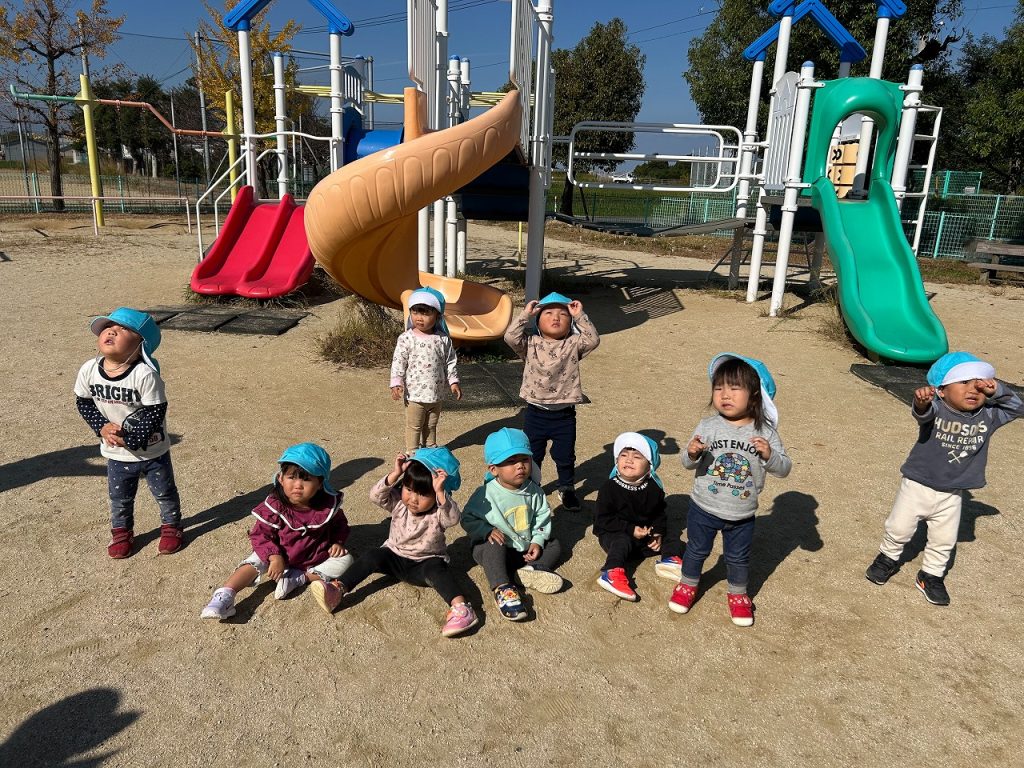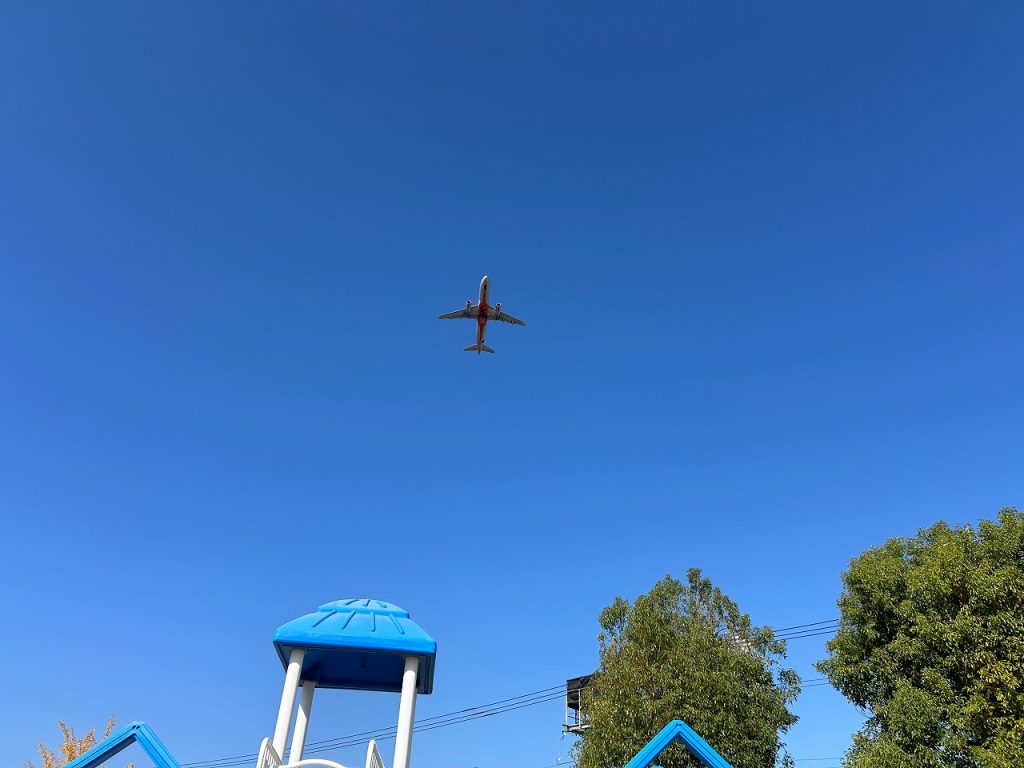 遊んでいると飛行機が公園の上を通りました。お日様がまぶしかったけれど、飛ぶ様子をじーっと見つめる子どもたちでした(≧▽≦)