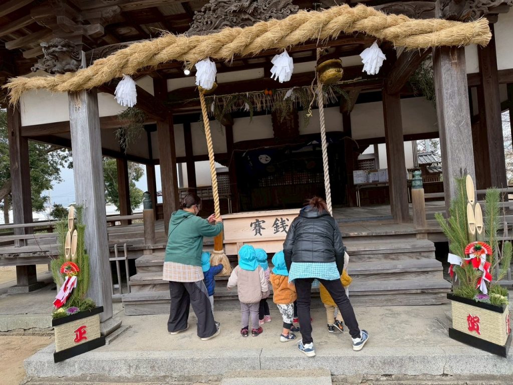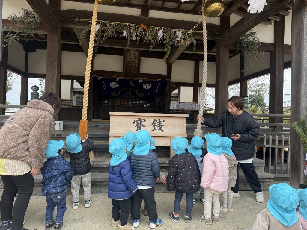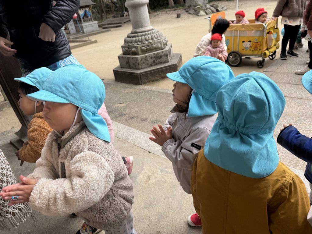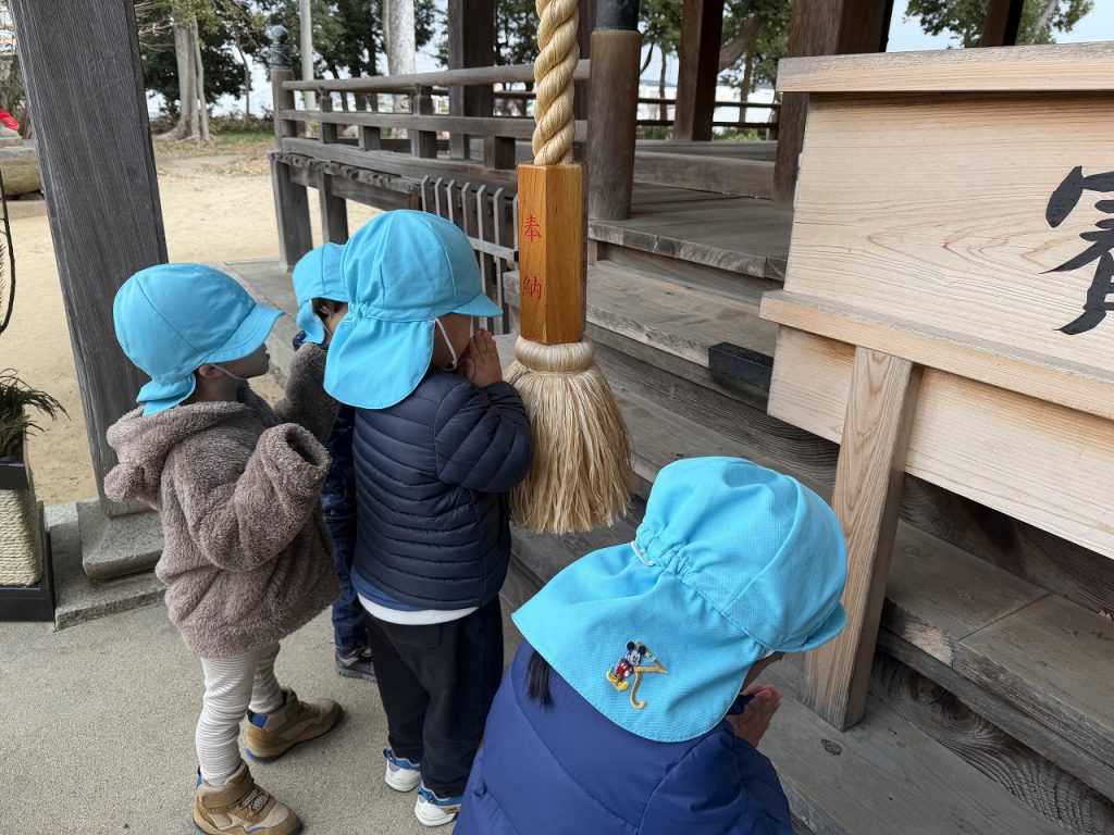 【5日】新年初登園:みんなで近くの神社に行きました。「ことしも元気に過ごせますように」…いろいろな思いで参拝しました。